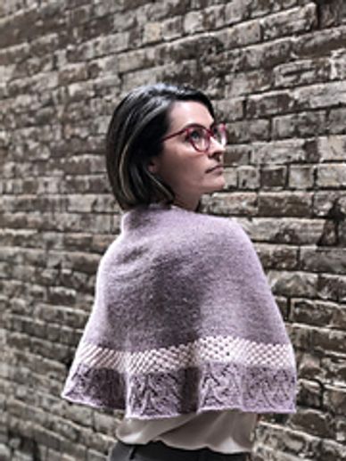 Midge is a crescent shawl worked from the top down in two colors. It begins with a simple stockinette stitch, flows into a textured lace section, and ends with a lace border. A cozy accessory to knit up while TV watching.